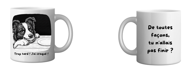 2 mugs humoristiques, pour taquiner la gourmandise de votre chien.